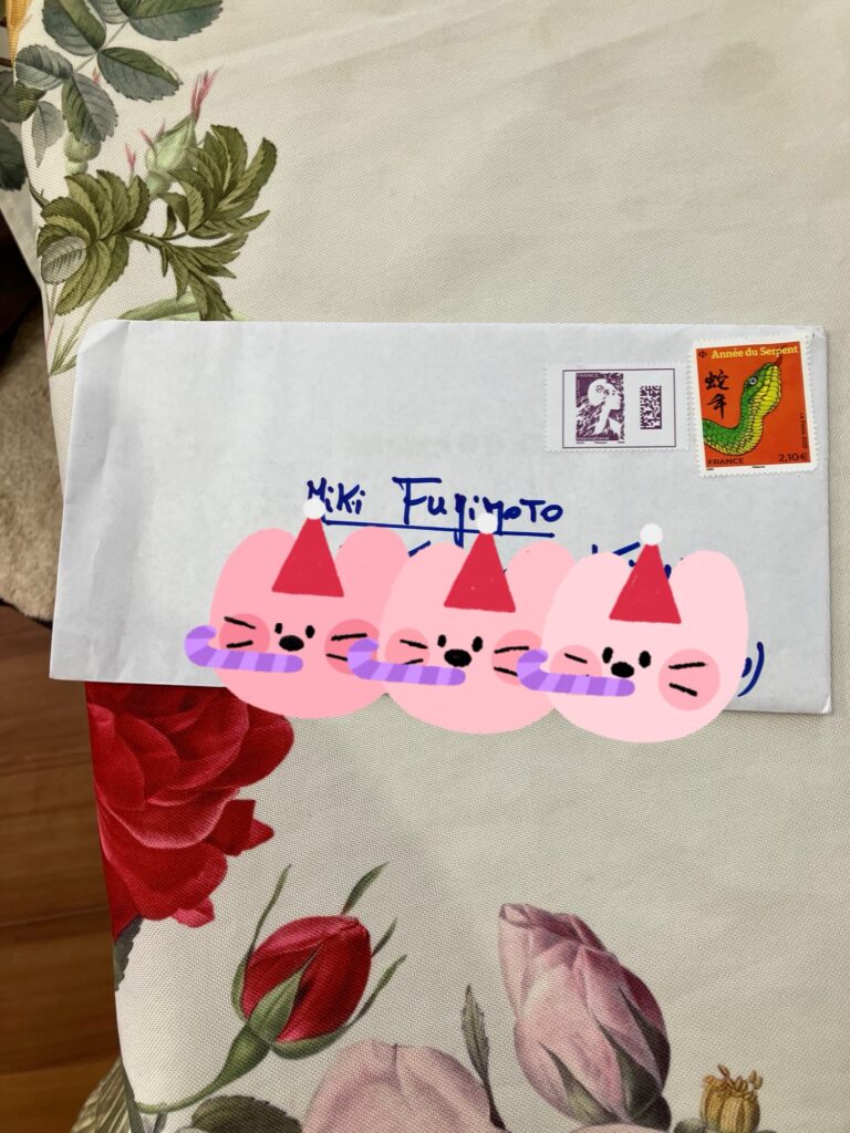りっちゃんはダイアナ妃や、かつてのレーガン大統領ナンシー妃が大ファンでプライベートコンサートにもりっちゃんを招かれたり日本の皇族の方もっちゃんファンと伺います。世界に認められてるりっちゃん。いつも私はフランス語で具体的に手紙を書くので読んでて面白いのかもしれません。ちなみに「All my best幸運を祈る、A bientotまた近いうちに.Bisesキスを」と書いてあり余計キャー!!卒倒!!世界中の女性心はだけじゃなくて、最前列とか男性ばっかりで同性の男性からも人気があるりっちゃん凄すぎる。老若男女国を超えて、そんな狭い世界なんか突破して人気のあるりっちゃん。ついつい日々の生活だと視野が狭くなる事例もありますが、うまく対処しながら相変わらず広い世界を私もりっちゃんのように見ていこうと思っています。ちなみに蛇の切手はりっちゃん巳年だし去年巳年だったので、去年フランスでりっちゃん切手買ったのかな。手紙をりっちゃんに送ってたのは12月初旬でした。